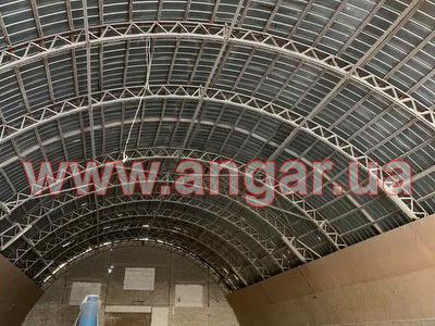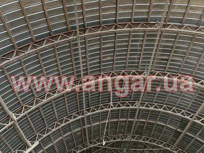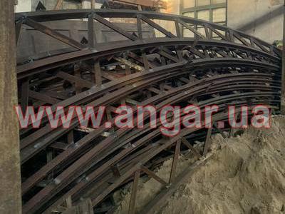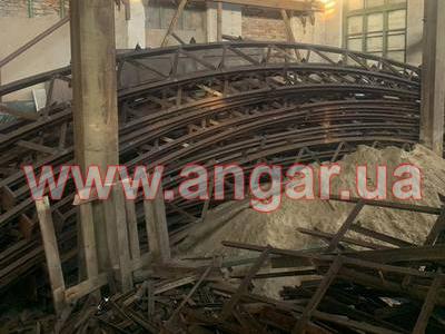 | Ангар арковий. Демонтовані елементи конструкцій. Металева ферма складається з 4 сегментів, Кожен сегмент зварений з двох швелерів перерізом 65мм. Розкоси з кутника. Всього 30 сегментів. Крок арок 3м. Розмір ангару 16х18 (тобто 7 повних арок + 2 сегменти) але можна зібрати арку з 3 сегментів тоді буде 10 арок. Сегменти демонтовані, складовані і готові до відвантаження. |