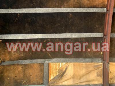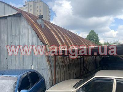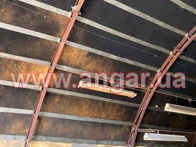 | Ангар арочного типа. Установлен в полной комплектации. Всего 11 металлических арок. Шаг арок 3м. Каждая арка состоит из 3-х сегментов. Всего 33 сегмента. Верхний и нижний пояс каждого сегмента из катаного швеллера сечением 60мм, расшитого между собой швеллером сечением 60мм. Всего 8 торцевых колонн из швеллера сечением 100мм. В комплекте двое торцевых распашных ворот размером 3,5х4м. Ангар обшит металлическим листом размером 0,90х1м. Толщина металла 0,6мм. Брус пригоден для вторичного использования. |