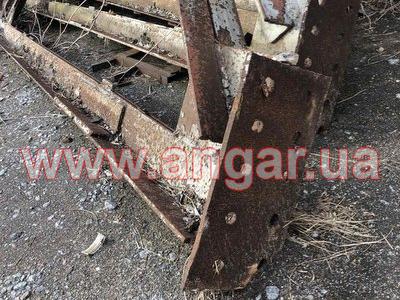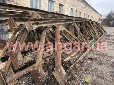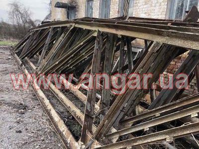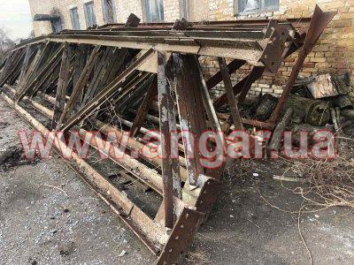 Ферма металева двоскатна. Демонтована. Верхній та нижній пояс спарений кутник перерізом 130х80мм, розкоси перерізом 80х80мм. Кріплення в бік колони. Всього 8 ферм. Крок 6м. Висота ферми 2.2м.