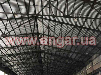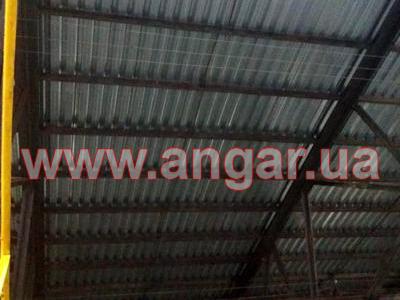 | Кровельный модуль. Ферма: металлическая, двускатная. Ширина 30м. Высота 4м. Цельносварная. Верхний и нижний пояс из спаренного уголка сечением 90мм. Раскосы из спаренного уголка сечением 63мм,75мм. Шаг ферм 6м. Крепление к колоннам сварное. Вес одной фермы около 4,5т. Всего 17шт. Связи между фермами из спаренного уголка сечением 75мм. Всего 576м.п. (6 рядов). Кровельные прогоны из швеллера сечением 140мм. Всего 2688м.п. (28 рядов). На кровле профлист. Высота волны 57мм. Вес кровельного модуля включая профлист 145т. |