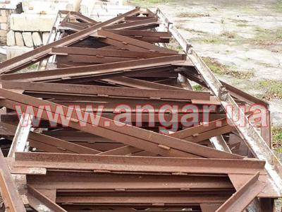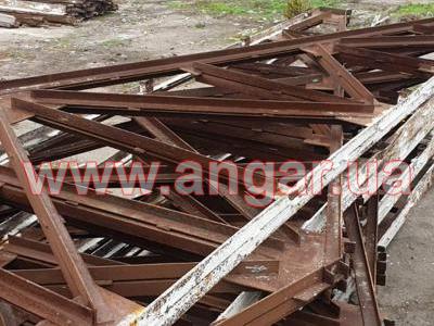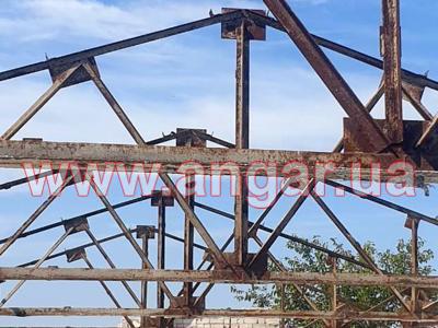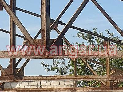 | Ферма. Металлическая, двускатная. Ширина 11,25м. Высота 1,80м. Цельносварная. Верхний и нижний пояс из спаренного уголка сечением 75мм, раскосы из уголка сечением 75мм, 50мм. Шаг ферм 4м. Крепление к колоннам сварное. Вес фермы 0,75т. Всего 15шт. |
