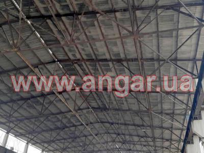 | Ферма. Металлическая, двускатная. Цельносварная. Ширина 32м. Высота 3,20м. Верхний пояс из спаренного уголка сечением 120мм, нижний пояс из спаренного уголка сечением 100мм. Раскосы из спаренного уголка сечением 100мм. Крепление к колоннам сварное. Шаг ферм 6м. Вес одной фермы около 3т. Всего 21шт. |