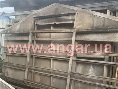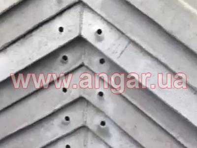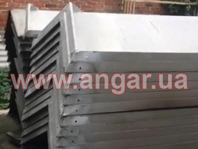 | Ангар шатрового типу. Безкаркасний дюралюмінієвий. Демонтований. Складається з V-образних елементів, що виконують роль огороджувальних та несучих конструкцій. З*єднання елементів між собою здійснюється за допомогою болтів. Всього V-образних елементів - 112шт. Прямих фасадних елементів - 8шт. Торцеві елементи та фронтони - 2 комплекти. Стулки воріт - 4шт. В комплекті фундаменті пластини та 50 відсотків болтів для кріплення сегментів між собою Ангар демонтований, складований та готовий до відвантаження. |
