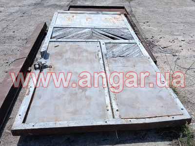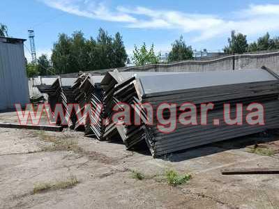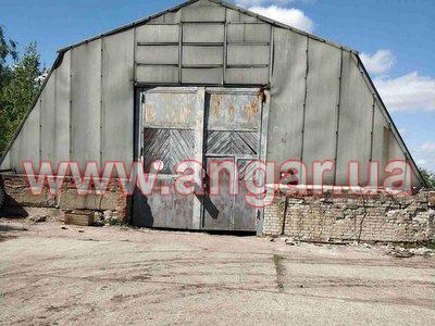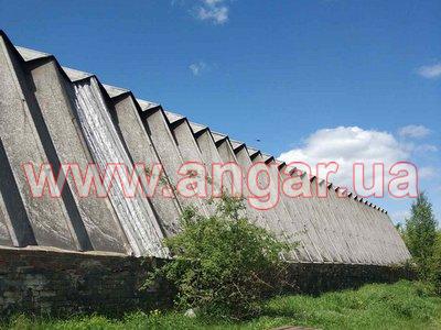 | Ангар шатрового типу. Безкаркасний дюралюмінієвий. Демонтований. Складається з V-образних елементів, що виконують роль огороджувальних та несучих конструкцій. Кріплення елементів між собою здійснюється за допомогою болтів. Товщина металу 2,0мм. Всього V-образних елементів - 112шт. Крайні фасадні елементи що поєднуються з торцевою частиною - 8шт. Ворота розпашні торцеві розміром 3,2х3,7м |