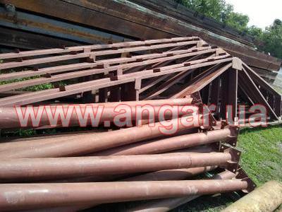 | Ангар прямостенного типа Демонтированный каркас. Колонны из трубы сечением 159мм, стенка 6мм. Высота колонны 4м. Пятка размером 300х300х12мм. Крепление к фундаментам на анкерах. Пластина под ферму размером 290х290х8мм. Всего 12 колонн. Шаг колонн 5м. Фермы из гнутого швеллера сечением 180мм. толщина стенки 3,5мм. Крепление к колоннам на болтовом соединении. Всего 6 ферм. Ангар демонтирован, складирован и готов к погрузке. |