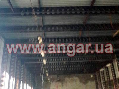 | Ангар прямостенного типа. Универсальное сборно разборное здание. Типовой проект Пионер. Состоит из двух смежных модулей длиной 42м и 48м с одной общей стеной. Основными конструктивными единицами здания являются складывающиеся секции шириной 3м и длиной 12,8м. Здание монтируется целыми блоками (пролетами), которые состоят из двух стен и пролета крыши, что значительно увеличивает скорость и снижает стоимость монтажа. Стены утеплены ППУ (толщина 60мм). Кровля - профилированный лист ПН-57.