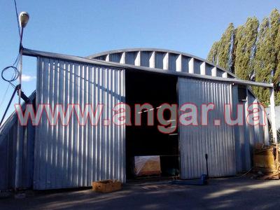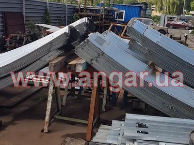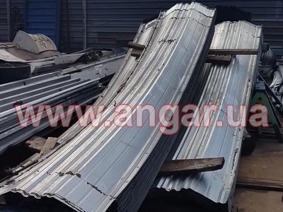 | Ангар арочного типа. Демонтирован в полной комплектации. Бескаркасный на болтовом соединении. Представляет собой легкую, быстровозводимую конструкцию из оцинкованной стали. Ограждающими и несущими элементами являются арки, собираемые из оцинкованных гофрированных листов. В одной арке 5 секций разной длины. (нижние - 176шт, средние 176шт, верхние 88 шт.) Болтовое соединение листов позволяет в короткие сроки производит демонтаж и монтаж данной конструкции без потери качества. В комплекте 2 раздвижных ворота размером 6м (ширина) х 4м (высота). Ворота разобраны на состовляющие элементы. Около 70% болтов сохранены. В наличии комплект связей (240 м.п.), Система вентиляции (2 модуля и 2 решеки). Ангар складирован и готов к погрузке. |