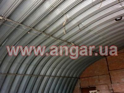 | Ангар арочного типа. Бескаркасный, на болтовом соединении. Установлен в полной комплектации. Представляет собой легкую, быстровозводимую конструкцию из оцинкованной стали. Ограждающими и несущими элементами являются арки, собираемые из оцинкованных гофрированных листов. В одной арке 7 секций разной длины. Болтовое соединение листов позволяет в короткие сроки производит демонтаж и монтаж данной конструкции без потери качества. В комплекте 2 раздвижных ворота размером 6,1м (ширина) х 4,3м (высота). |