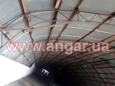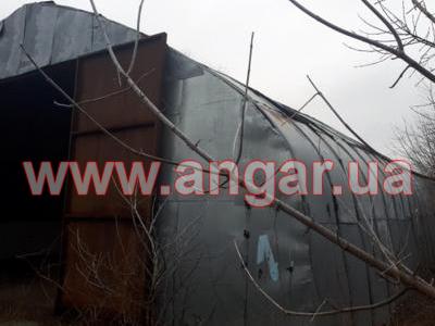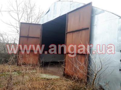 | Ангар арочного типа. Установлен в полной комплектации. Всего 24 металлические арки. Шаг арок 3м. Каждая арка состоит из 2-х сегментов. Всего 48 сегментов. Верхний пояс из круглого прута №22, нижний пояс каждого сегмента состоит из шестигранного прута №22, толщина прута 30мм, расшитого между собой арматурой. В комплекте двое торцевых распашных ворот размером 4,50мх5м. Ангар обшит оцинкованным листом размером 2мх1,10м. Толщина металла 0,8мм. |