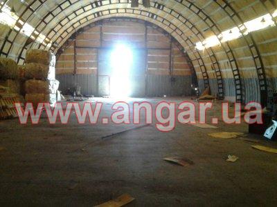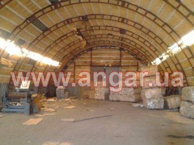 | Ангар арочного типа. Установлен в полной комплектации. Всего 13 металлических арок. Шаг арок 3м. Каждая арка состоит из 5 сегментов. Всего 65 сегментов. Верхний и нижний пояс каждого сегмента из швеллера сечением 100мм, расшитого между собой пластинами. Всего 8 торцевых колонн. В комплекте двое торцевых раздвижных ворот размером 4,0х4,5. |