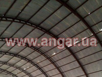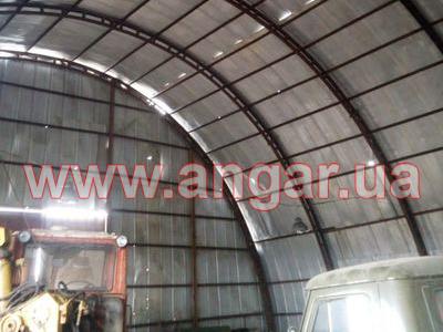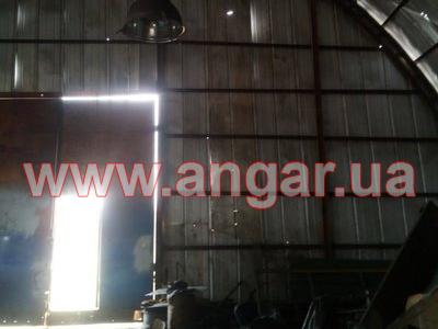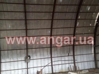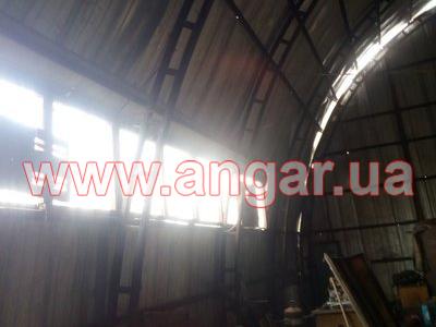 | Ангар арочного типа. Установлен в полной комплектации. Всего 11 металлических арок. Шаг арок 3м. Каждая арка состоит из 4 сегментов. Всего 44 сегмента. Верхний и нижний пояс каждого сегмента из гнутого швеллера сечением 100мм, расшитого между собой швеллером. Торцевые колонны - 8 шт. Ворота распашные размером 3,6х4м - 2шт. Ангар обшит оцинкованным листом размером 8,5х1м. (3 листа по дуге) Толщина - 0,7мм. Металлические прогоны швеллер сечением 60мм. Всего 24 ряда. |