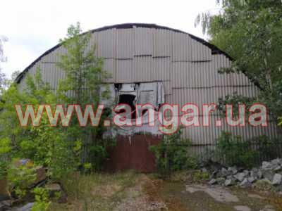 Ангар аркового типу. Демонтований. Металева арка складається з 4 сегментів. Кожен сегмент складається з двох швелерів перерізом 65мм розварених між собою на відстані кутниками. Всього 12 арок (48 сегментів). Обшитий металевим листом (на 1 торці листа немає). В комплекті 8 торцевих колон Каркас воріт розміром 4х4,3м