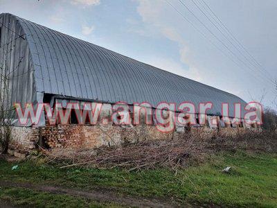 | Ангар арочного типа. Установлен в полной комплектации. Всего 13 металлических арок. Шаг арок 3м. Каждая арка состоит из 5 сегментов. Всего 65 сегментов. Верхний и нижний пояс каждого сегмента состоит из гнутого швеллера сечением 100мм, расшитого между собой пластинами из листового металла. В комплекте двое торцевых ворот, раздвижных ворот размером 4х4,50м. Ангар обшит оцинкованным листом размером 1,20х2м. Толщина металла 0,9мм. Кран балка в комплекте не идет. |