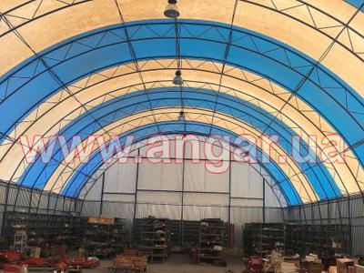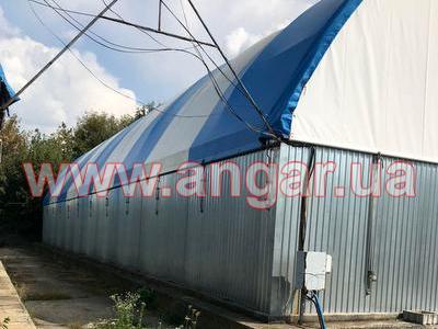 | Ангар арочного типа. Каркасно - тентовый. Установлен в полной комплектации. Всего 13 металлических арок. Арки установлены с шагом 3м. Каждая арка состоит из 4-х элементов (2 полуарки и 2 вертикальные стойки под арки). Всего: 26 полуарок, 26 вертикальных стоек под арки. Верхний и нижний пояс каждого сегмента состоит из трубы сечением 57мм, расшитого между собой трубой сечением 25мм. Все на болтовом соединении. Всего 9 торцевых колонн сложного сечения из двух труб сечением 57 мм, сваренных на расстоянии трубой. В комплекте торцевые распашные ворота размером 4х4м. Профлист по всему периметру ангара на боковые вертикальные стены размером 3,40х1м. Дорожные плиты размером 1,5х3м. Всего 32 плиты. Тентовое покрытие по дуге и в торцах многослойного плетения, стойкое к ультрафиолету, порезам. |