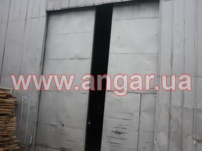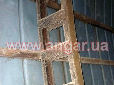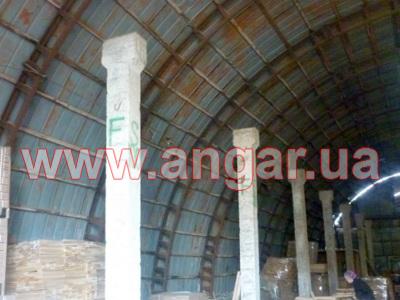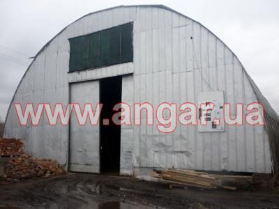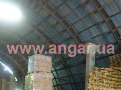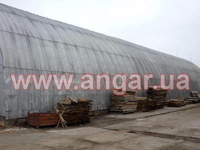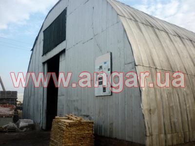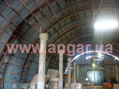| Ангар арочного типа. Установлен в полной комплектации. Всего 13 металлических арок. Шаг арок 3м. Каждая арка состоит из 5 сегментов. Всего 65 сегментов. Верхний и нижний пояс каждого сегмента состоит из катаного швеллера сечением 100мм, расшитого между собой пластинами из листового металла. В комплекте двое торцевых ворот, раздвижные и распашные размером 4х4,50м. Ангар обшит профильным листом размером 1,10х2,10м. Толщина металла 1мм. |