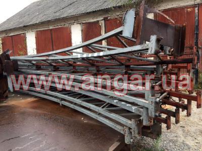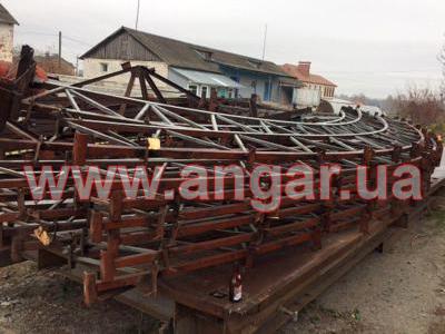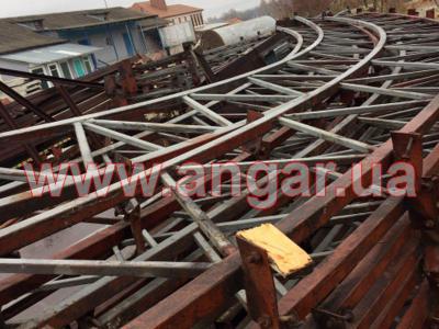 | Ангар арочного типа. Демонтирован в полной комплектации. Всего 11 металлических арок. Арки устанавливались с шагом 3м. Каждая арка состоит из 3-х сегментов. Всего 33 сегмента. Верхний и нижний пояс каждого сегмента состоит из профильной трубы сечением 50х50мм, расшитого между собой профильной трубой сечением 25х25мм. В комплекте одни роллетные ворота размером 3,50х4м. Ангар обшит оцинкованным листом размером 1х2,50м. Ангар складирован и готов к погрузке. |
