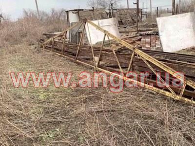 | Ферма. Металлическая, двускатная. Ширина 12м. Высота 1,50м. Цельносварная. Верхний и нижний пояс из спаренного уголка сечением 63мм, раскосы из спаренного уголка сечением 25мм, 35мм. Шаг ферм 4м. Крепление к колоннам болтовое. Всего 190шт. |