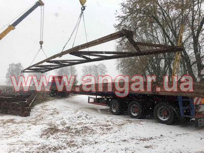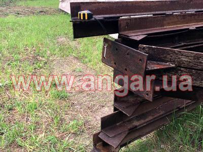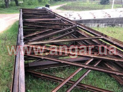 | Ферма. Металлическая, односкатная. Ширина 30м. Высота 3,50м. Цельносварная. Верхний пояс из спаренного уголка сечением 130мм, нижний пояс из спаренного уголка сечением 120мм, раскосы из спаренного уголка сечением 65мм,100мм,120мм. Шаг ферм 6м. Крепление к колоннам болтовое. Вес одной фермы около 4,5т. Всего 12 шт. |