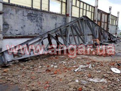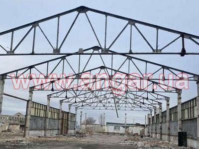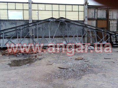 | Ферма металлическая цельносварная. Ширина 18м. Верхний пояс из спаренного уголка сечением 110мм, нижний из спаренного уголка сечением 75мм Раскосы из спаренного уголка сечением 60мм. Всего 11 ферм. Вес одной ферм около 2,5т. Фермы демонтированы, складированы и готовы к погрузке. |