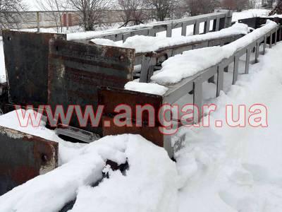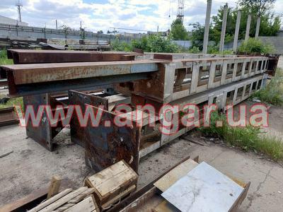 | Колонны. Демонтированные. Комплект колонн может накрыть площадь шириной 18м и длиной 48м. Всего 18 колонн. Высота одной колонны 8м. Высота до установки кран-балки 6.6м. Колонна сложного сечения, из двух швеллеров № 24П, сваренных на расстоянии 0.5м пластинами из листового металла размером 200х500мм, толщина металла 8мм. Сечение колонны 500х240мм. Пятка размером 800х750мм, толщина металла 25мм. Оголовок колонны из листового металла размером 445х550мм, толщина металла 20мм. Надколонник длиной 1400мм, из швеллера сечением 240мм и двутавра сечением 180мм сваренных между собой. |
