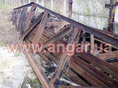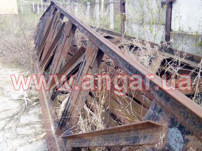 | Ферма. Металлическая двускатная. Ширина 12м. Высота в центре 1,50м, высота по бокам 0,94м. Цельносварная. Верхний, нижний пояс и раскосы состоят из спаренного уголка сечением 75мм. Крепление к колоннам сварное. Фермы устанавливаются с шагом 6м. Вес одной фермы 1,2т. Всего 6шт. |