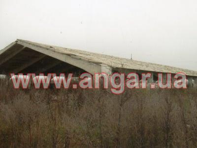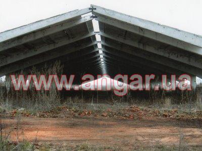 Ангар клюшечный. Шаг 4м. Обшит кровельной плитой и одним рядом стеновой плиты размером 4м*1,6м.