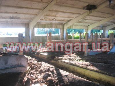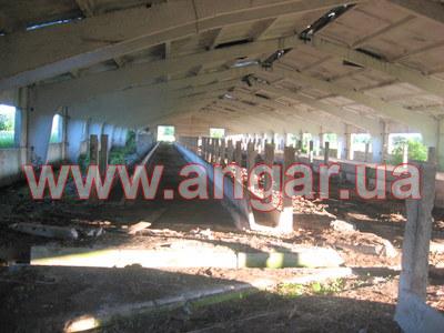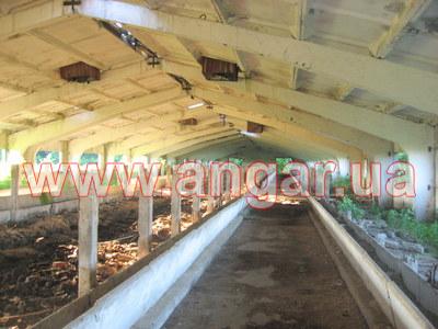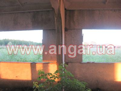 | Ангар клюшечный. Установлен в полной комплектации. Шаг клюшек 6м. Всего 25 пар клюшек. Плиты перекрытия 1х6м, всего плит 288шт. Верхняя плита и нижняя плита стены 6x1,2м, средняя плита стены 1,5x1,2 м. |