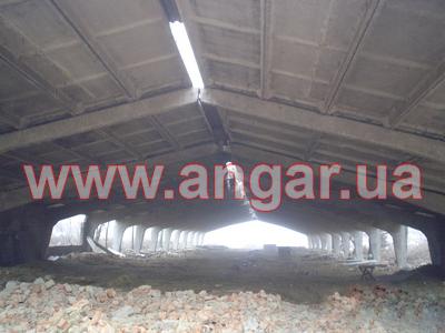 Ангар клюшечный. Установлен. Шаг клюшек 6м. Всего 14 пар клюшек. Кровельные плиты размером 1,5х6м. Всего кровельных плит 182шт. В комплекте 28 стаканов для клюшек.