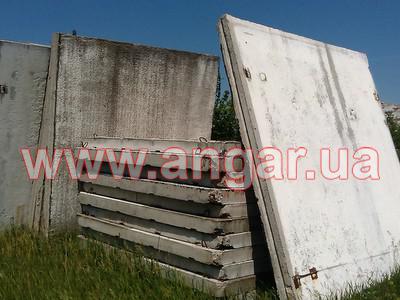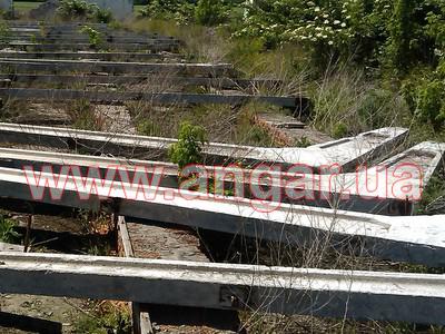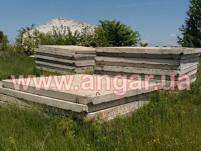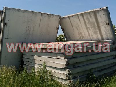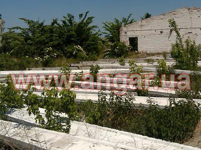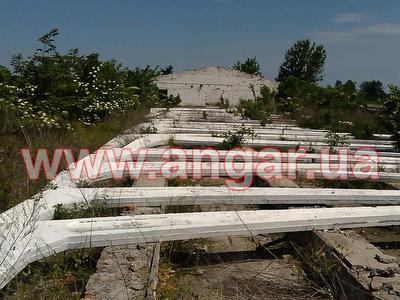 Ангар клюшечный. Ангар находится в демонтированном состоянии. Шаг клюшек 4м. Всего 25 пар клюшек. Кровельные плиты размером 4х3м. Всего кровельных плит 144шт. Стеновые плиты размером 4х3м. Всего стеновых плит 48шт.