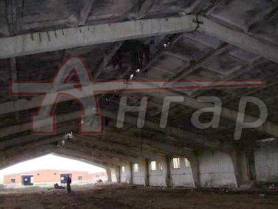 Клюшечный ангар. Установлен в полной комплектации. Клюшки стоят с шагом 6м. В комлпетке стеновые и кровельные плиты перекрытия.