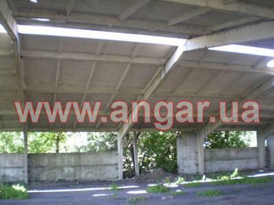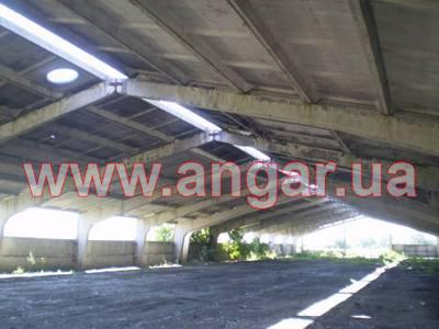 Ангар клюшечный. Установлен. Разукомплектован. Шаг клюшек 6м. Всего 28 пар клюшек. Кровельные плиты размером 1,5х6м (108шт) и 3х6м (30шт). Стеновые плиты размером 1х6м. Всего 52шт.