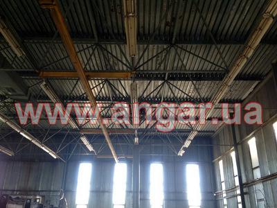 | Ангар прямостенного типа. Установлен. В комплекте: несущие колонны из трубы сечением 420мм.- 4шт , кровельный модуль из труб разного сечения - 1шт. Колонны по периметру из двутавровой балки сечением 200мм - 20 шт., прогоны по кровле швеллер сечением 140мм - 10 рядов. Стеновые прогоны - швеллер сечением 120мм - 3 ряда. Ограждающие конструкции - сэндвич панель 80мм, тип наполнения - минеральная вата, на кровле - несущий профлист. Кран-балка в комплекте не идет. |
