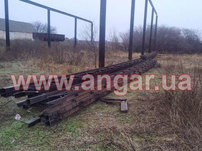| Ангар прямостенного типа. Армянский навес. Демонтированный каркас. Центральный ряд и один крайний ряд колонн из трубы сечением 273мм, стенка 7мм. Другой боковой ряд колонн из