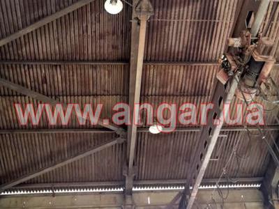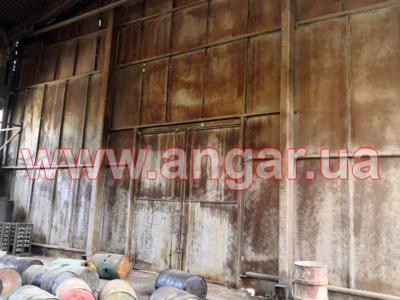 | Ангар прямостенного типа. Установленный каркас. Колонны коробчатого сечения 500х270мм из двух гнутых швеллеров и листового металла. Всего 18 колонн. Шаг колонн 6м. Высота колонны 7,2м. Крепление к фундаментам на анкерах. Торцевые колонны из профильной трубы сечением 180х180мм. Всего 4шт. Стропильные балки коробчатого сечения 500х270мм из двух гнутых швеллеров и листового металла. Всего 9 балок. Крепление к колоннам болтовое. Снизу стропильных балок идет затяжка из швеллера сечением 100мм сваренного в коробку. Установлена кран балка грузоподъёмностью 5т на высоте 5,6м. Подкрановый путь из двутавровой балки сечением 450мм. Кровельные прогоны из гнутого швеллера сечением 160мм. Всего 8 рядов (384 м.п). Стеновые прогоны из гнутого швеллера сечением 160мм. Всего 4 ряда (544 м.п). Крестовые связи между колоннами из профильной трубы сечением 100х150мм. Вес около 65т. |
