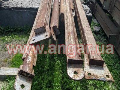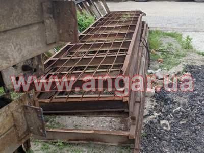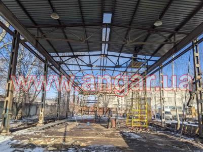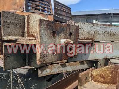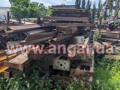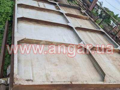 | Ангар прямостінного типу. Демонтований каркас. Під складське та виробниче приіміщеня. Колони одного ряду зі спареного швелеру перерізом 300мм. Колони іншого ряду зі спареного швелеру перерізом 160мм. Висота колони 6,3м. Ферми зі спареного кутника. У верхньому поясі кутник перерізом 145х90, у нижньому поясі кутник 125х80, розкоси з кутника перерізом 90х50. Крок ферм 6м. Всього 11 ферм. В ангарі передбачена підвісна кран балка вантаже підємністю 2.3т. Підкрановий шлях двотаврова балка перерізом 450мм. Всього 84м.п. На 7 прольотів. Стінові прогони з кутника перерізом 75мм. Між колонами по верху встановлюються розпорки з труби 100х100мм. Всього 20шт. Між фермами по коньку також встановлюються розпорки. Всього 10шт. Ангар демонтований, складований та готовий до відвантаження. |