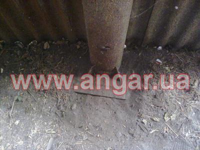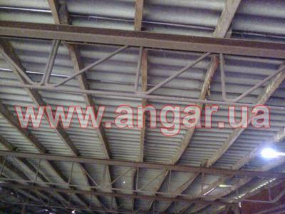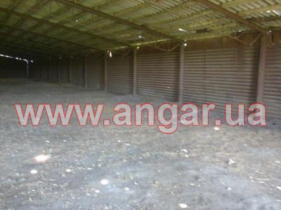 | Ангар прямостенного типа. Разукомплектован. Двухскатный. Двухпролетный. Колонны из трубы диаметром 110мм. Высота центрального ряда колонн - 4,7м, внешних колонн - 2,9м. Всего колонн центрального ряда - 14шт, внешних колонн - 28шт. Шаг колонн - 4м. Крепление колонн с фундаментами на сварном соединении. Длина фермы 10,2м. Верхний пояс фермы из спаренного равнополочного уголка сечением 75х75мм. Нижний пояс и раскосы фермы из прута диаметром 20мм. Шаг ферм - 4м. Всего ферм - 14шт. В комплекте двое распашных ворот размером 4х3,5м. Стены ангара обшиты черным волнистым металлом толщиной 2мм, на кровле - шифер. |