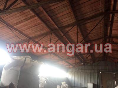 | Ангар прямостенного типа. Установленный каркас. Колонны из спаренного швеллера сечением 100мм. Всего 12 колонны. Шаг колонн 3м. Высота колонны 3,60м. Крепление к фундаментам - забетонированы. Фермы цельносварные. Верхний пояс из спаренного уголка сечением 63мм, нижний пояс из спаренного уголка сечением 45мм, раскосы из спаренного уголка сечением 25мм, 35мм. Высота фермы 1,74м. Всего 11 ферм. Кровельные прогоны из швеллера сечением 80мм. Всего 240 м.п. (8 рядов). В комплекте двое торцевых распашных ворот размером 3,20х3,30м. Одни фасадные распашные ворота размером 2х2м. |