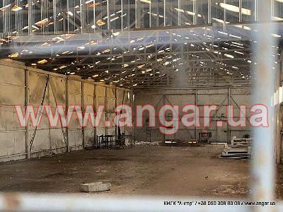 | Ангар прямостенного типа. Установлен, разукомплектован. Колонны из трубы сечением 250мм. Всего 34 колонны. Шаг колонн 3м. Высота колонны 5м. Колонны забетонированы. По колоннам идет швеллера сечением 200мм, всего96 м.п. К нему крепятся фермы. Фермы цельносварные. Верхний, нижний пояс и раскосы из швеллера сечением 120мм. Крепление к колоннам на сварке. Высота фермы 1,80м. Всего 17шт. По фасаду ангар обшит железным листом, по торцах обшит оцинкованным листом, на крыше шифер. В комплекте 3-е распашных ворот. Двое размером 2,50мх2,90м, одни размером 6мх4,80м. |