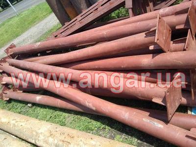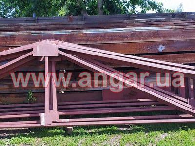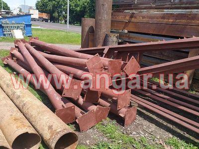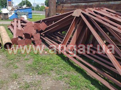 | Ангар прямостенного типа Демонтированный каркас. Колонны из трубы сечением 159мм, стенка 6мм. Высота колонны 4м. Пятка размером 300х300х12мм. Крепление к фундаментам на анкерах. Пластина под ферму размером 290х290х8мм. Всего 12 колонн. Шаг колонн 5м. Фермы из гнутого швеллера сечением 180мм. толщина стенки 3,5мм. Крепление к колоннам на болтовом соединении. Всего 6 ферм. Ангар демонтирован, складирован и готов к погрузке. |