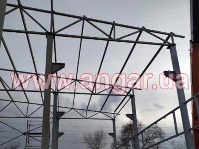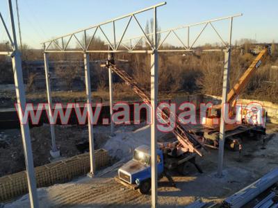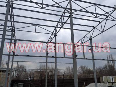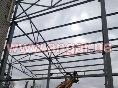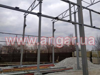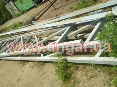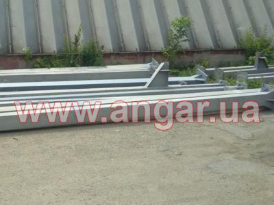 | Ангар прямостенного типа. Двухпролетный. Демонтирован, в полной комплектации. Колонны из двух швеллеров сваренных в коробку сечением 240мм. Всего 15 колонн. Шаг колонн 6м. Крепление к фундаментам на анкерах. Подкрановый путь из двутавровой балки сечением 360мм, Q = 3,2т. Установлен на высоте 6,75м. Высота до низа тельфера 5,50м. Фермы цельносварные, односкатные. Верхний и нижний пояс из профильной трубы сечением 80ммх4мм, раскосы из профильной трубы сечением 60ммх4мм. Крепление к колоннам болтовое. Всего 5 ферм. Кровельные прогоны из швеллера сечением 160мм, всего 264 м.п. Ограждающие конструкции: сендвич панели (не монтировались), наполнитель - минеральная вата, толщина 100мм. На кровле профнастил, высота волны 60мм, толщина металла 0,7мм. В комплекте связи крестовые и горизонтальные, окна глухие - 5шт., размер 1200х400мм. Ворота в комплекте отсутствуют. |