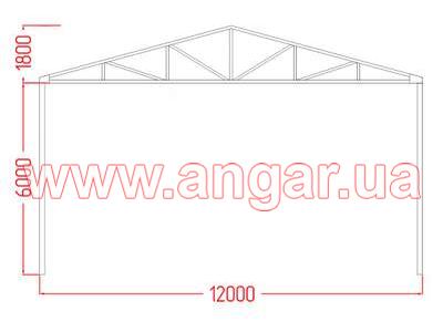 | Ангар прямостінного типу. Колони зі 159 труби, стінка 5-6мм. Висота колони 6,0м. Крок колон 6м. Всього 10 колон. Ферми двоскатні цільнозварні з круглої 89 труби стінка 4,5мм, розкоси з труби 76мм стінка 4мм. Крок ферм 3м. Всього 9 ферм. Підкроквяна ферма 5,84м. Верхній пояс з труби перерізом 89мм, стінка 4,5мм, нижній пояс з труби 76мм, стінка 4мм, розкоси з труби 42мм, стінка 4мм. Всього 8 підкроквяних ферм. Конструкція складована і готова до відвантаження. |