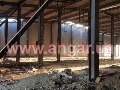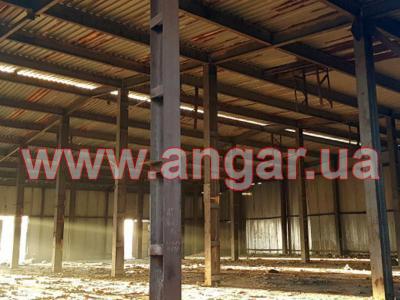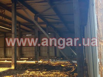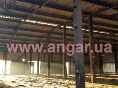 | Ангар прямостенного типа. Установлен, разукомплектован, 4-х пролетный. Колонны из двутавровой балки сечением 300мм. Всего 44 колонны. Шаг колонн: 2 центральных ряда по 6м и 2 пролета по 12 метров. Высота колонны в центре 7,5м, по краям ангара 6,5м. Крепление к фундаментам на анкерах. Кровельные балки из двутавра сечением 270мм. Крепление к колоннам болтовое. Обшит ангар: 3 стены сэндвич - панелью, наполнитель ППУ, толщина 80мм, 1 стена обшита оцинкованным листом, ( в общем по ангару отсутствует около 5 % обшивки). Ворот в комплекте нет. |