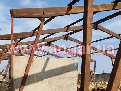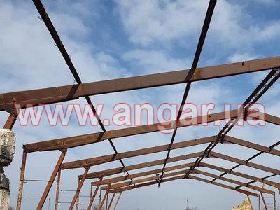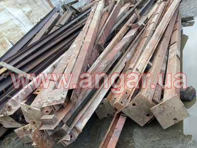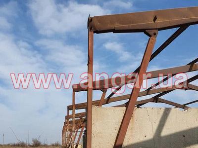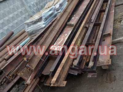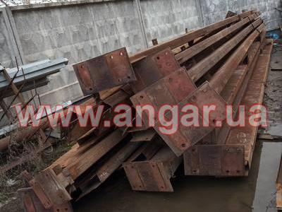 | Ангар прямостенного типа. Демонтированный каркас. Складское или производственное помещение. Колонны состоят из двух частей. Вертикальная часть - из трубы сечением 100х100мм подпорная часть из трубы сечением 100х120мм. Соединение частей между собой болтовое. Шаг колонн 5м. Всего 18 колонн. Кровельная стропильная балка состоят из двух балок коробчатого сечения размером 130х330мм. Крепление балок между собой болтовое. Крепление к колонам шарнирное. Всего 18 шт. Кровельные прогоны металлические разого проката (уголок, двутавр, швеллер) центральный ряд спаренный). Двое торцевых колонн. Ангар складирован и готов к погрузке. |