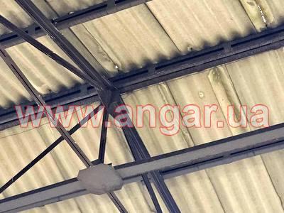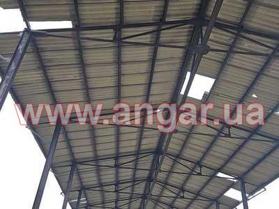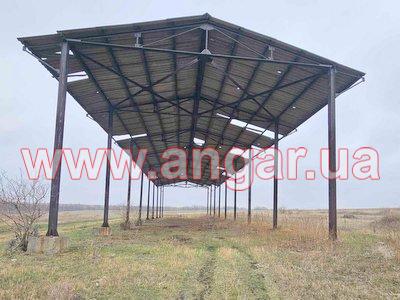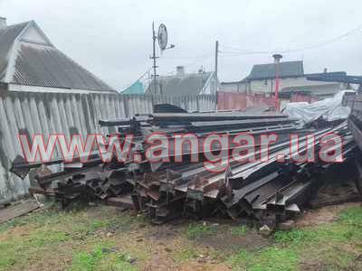 | Ангар прямостінного типу. Демонтований каркас. Під складське або виробниче приміщення. Колони з двох двотаврових балок перерізом 220х100х8мм зварених між собою полками. Довжина колон 8м, крок колон 6м. Опорні пластини при демонтажі зрізані. Всього 18 колон. Ферми двоскатні цільнозварні. Верхній пояс зі спареного кутика перерізом 75мм, нижні пояс та розкоси зі спареного нерівнополочного кутика 60х40. Висота ферми 1,5м. Крок ферм 6м. Кріплення до колон на зварці через закладні. Покрівельні прогони з двох гнутих швелерів перерізом 80х60х3мм зварених між собою на відстані через пластини. Довжина прогону 6м. Всього 10 рядів (480 м.п.) В першому та останньому прольоті між фермами встановлені хрести (вітрові повязі) 4 комплекти. Конструкція демонтована складована і готова до відвантаження. |