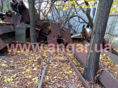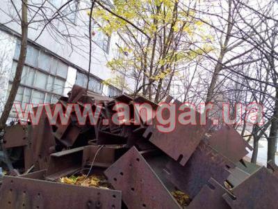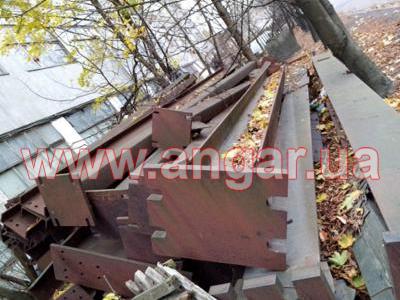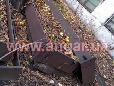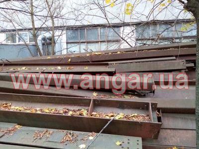 Ангар прямостенного типа. Модульное здание типовой проект Канск. Демонтированный каркас. Разукомплектован. Несущие колонны из двутавровой балки сечением 400х400мм. Шаг колонн 6м. Кровельные балки из двутавра сечением 950мм (9 рам). Торцевые несущие колонны из профильной трубы сечением 100х100х3мм (1рама). Всего 10 рам. Все соединения болтовые. Кровельные прогоны из швеллера сечением 240мм. Всего 264 м.п. Вес конструкции около 50т.