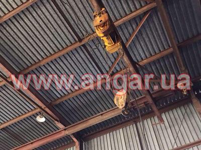 | Ангар прямостенного типа. Установлен в полной комплектации. Колоны из двутавровой балки сечением 400х180мм. Всего 30шт. Шаг колонн 6м. Высота колонны 7,40м. Торцевых колонн 8шт. Крепление к фундаментам на анкерных болтах. Фермы разборные. Верхний пояс из двутавровой балки сечением 360мм, понизу идет растяжка из спаренного уголка сечением 75мм. Высота фермы 2,10м. Всего 15 шт. Крепление к колоннам болтовое. В комплекте две рабочие кран-балки грузоподъёмностью 3,2т и 2т. Подвесной подкрановый путь из двутавровой балки 36Н. Крепление подкранового пути болтовое. Кровельные прогоны из Z-профиля сечением 180мм, толщина металла 3,5мм. Всего 840 м.п.(10 рядов). Стеновые прогоны из Z-профиля сечением 180мм, толщина металла 3,5мм. Всего 1020 м.п. (5 рядов). Обшит ангар металлопрофилем, высота волны 57мм, толщина металла 1мм. В комплекте 2-е торцевых раздвижных ворот размером 6х6м, и 2-е фасадных ворот размером 3х3м. Вес конструкции около 100т. |