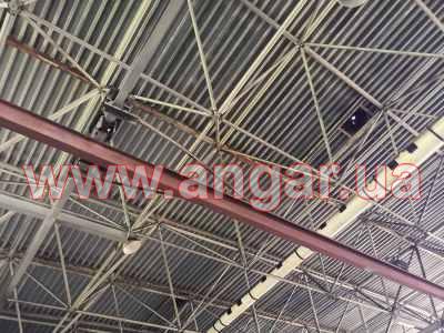 | Ангар прямостенного типа. Модульное здание типовой проект Кисловодск. Установленный каркас. Разукомплектован. Нет несущих колонн. (всего - 8шт.) Кровельный модуль из труб разного сечения размером 30х30 - 2 шт. Фахверковые колонны из двутавровой балки сечением 220мм, и двух швеллеров сечением 200мм, сваренных между собой на расстоянии. Всего фахверковых колонн по периметру ангара - 30 шт. Кровельные прогоны швеллер сечением 160мм. Стеновые прогоны швеллер сечением 160мм сваренный в коробку. По центру ангара установлена подвесная кран балка грузоподъемностью 2т. шириной 12м, длиной 48м. |