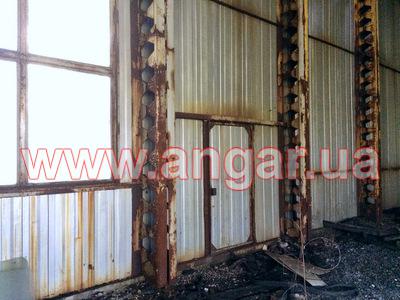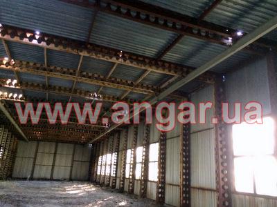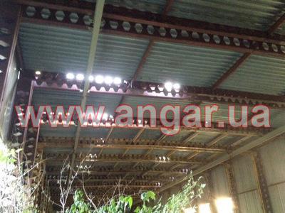| Ангар прямостенного типа. Универсальное сборно-разборное здание. Типовой проект Пионер. Основными конструктивными единицами здания являются складывающиеся секции шириной 3м и длиной 12,6м. Здание монтируется целыми блоками (пролетами), которые состоят из двух стен и пролета крыши, что значительно увеличивает скорость и снижает стоимость монтажа. Стены утеплены ППУ (толщина 60мм). Кровля - профилированный лист ПН-57. Возможна установка подвесной кран балки. В наличии есть подкрановый путь. |