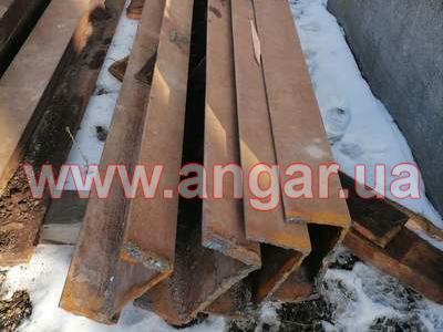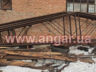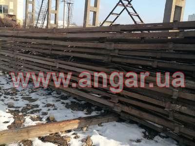| Ангар прямостінного типу. Демонтований каркас. Колони складного перерізу. Нижня частина (L=6,0м), виконана з двох швелерів перерізом 300мм розварених між собою на відстані 600 мм пластиною з листового металу товщиною 10мм. Верхня частина (L=1,5м) перерізом 300х200мм з двох швелерів зварених в коробку. Загальна висота колон 7,5м. Крок колон 6м. На висоті 6,0м були встановлені дві кран балки. Перша на 3,2т, інша на 5т. Ферми цільнозварні двох видів (однаковий розмір, різний матеріал) Перший вид: Верхній та нижній пояс зі спареного кутика перерізом 70мм, розкоси з подвійної арматури перерізом 28мм. Другий вид: Верхній та нижній пояс з труби перерізом 76мм, розкоси з подвійної арматури перерізом 28мм. Висота ферм 1,8м. Крок ферм 3м. Всього 28шт. Підкроквяна балка зі швелеру перерізом 300мм. Всього 152м.п. Ангар демонтований, складований та готовий до відвантаження. |