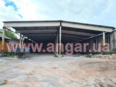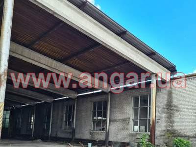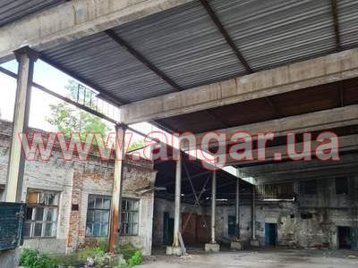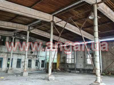 Ангар прямостінного типу. Встановлений. Двохпрольотний. Колони з труби перерізом 300мм. (20шт) та з двотаврової балки перерізом 390мм - 4шт. Крок колон 6м. Всього 21 колони. Кроквяні балки залізобетоні перерізом 600мм. Всього 14 балок по 12м. Покрівельні прогони зі швелеру перерізом 160мм. Всього 10 рядів (360м.п.)